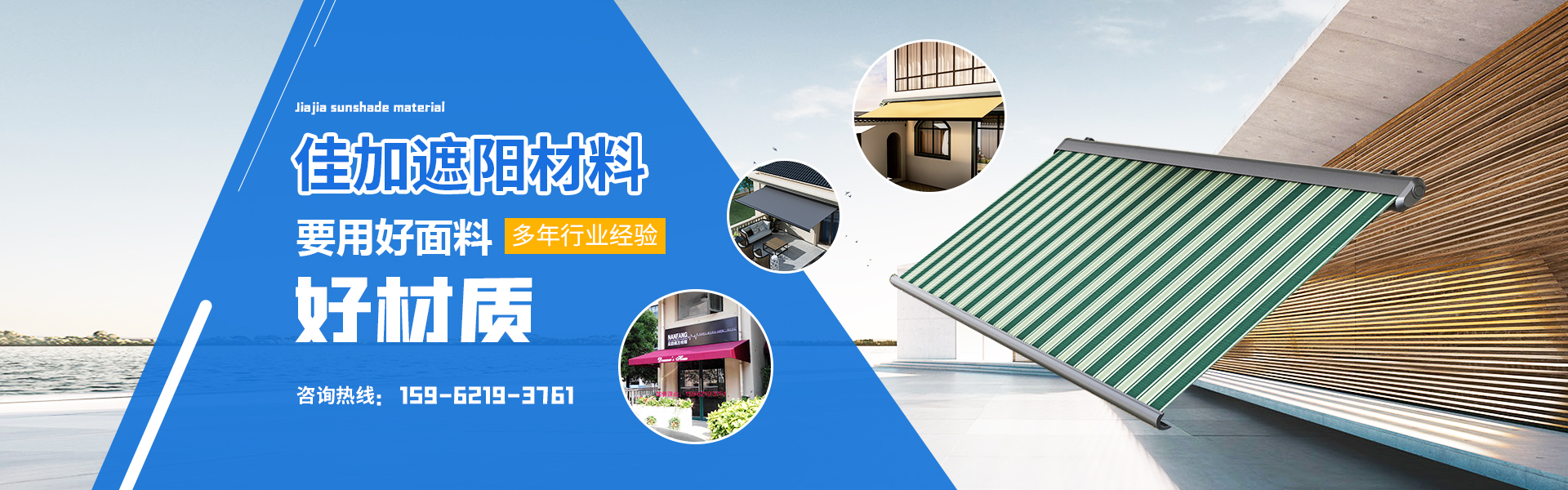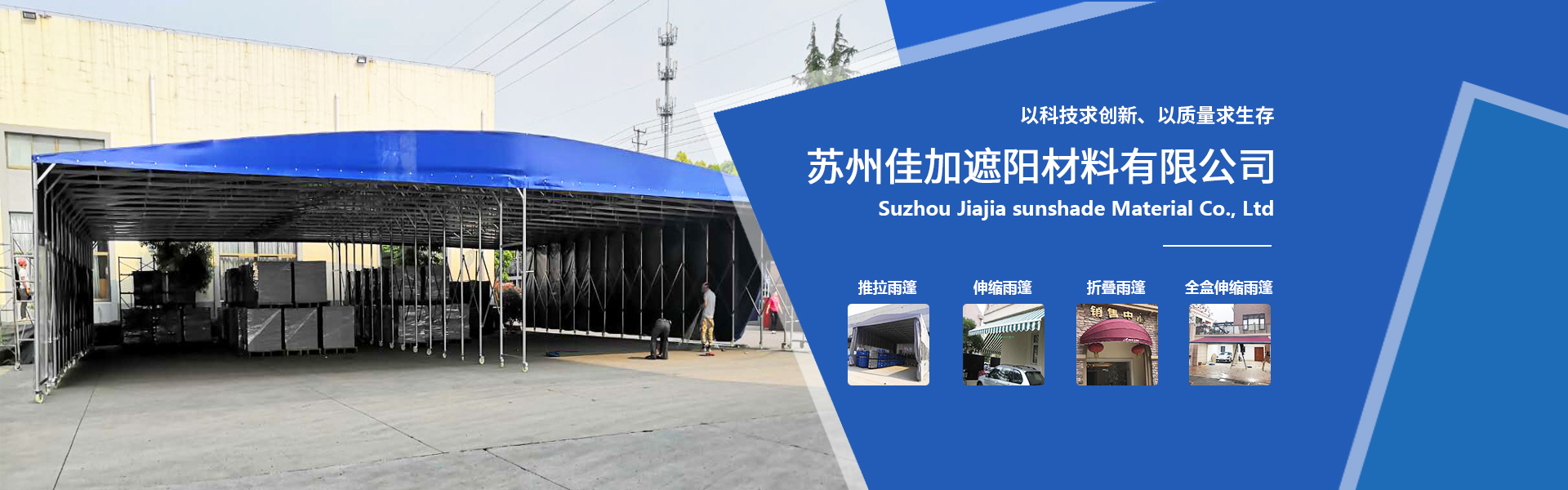 苏州佳加遮阳材料有限公司一家从事室内、外遮阳产品的销售、设计、安装、维护专注化遮阳公司,主要经营:电动推拉雨蓬、固定雨蓬、全盒伸缩雨蓬、伸缩雨蓬、天幕雨蓬、推拉雨蓬、折叠雨蓬、公司拥有一批高素质的设计及技术人员。